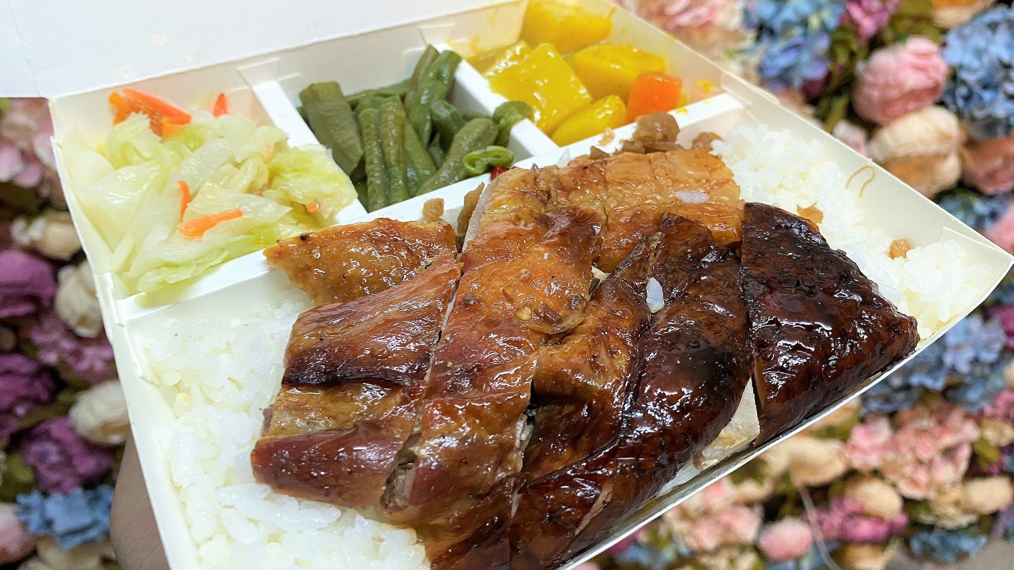燒鴨就擺在白飯的地方,