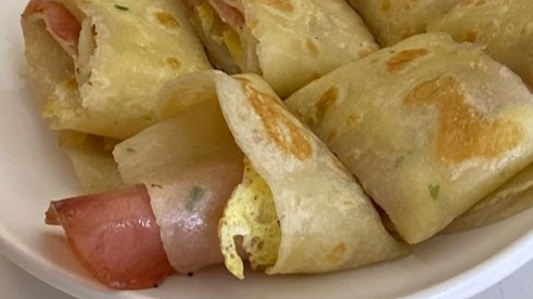 培根蛋餅(右上,$35元) & 火腿蛋餅(左,$30元,雙層餅皮)