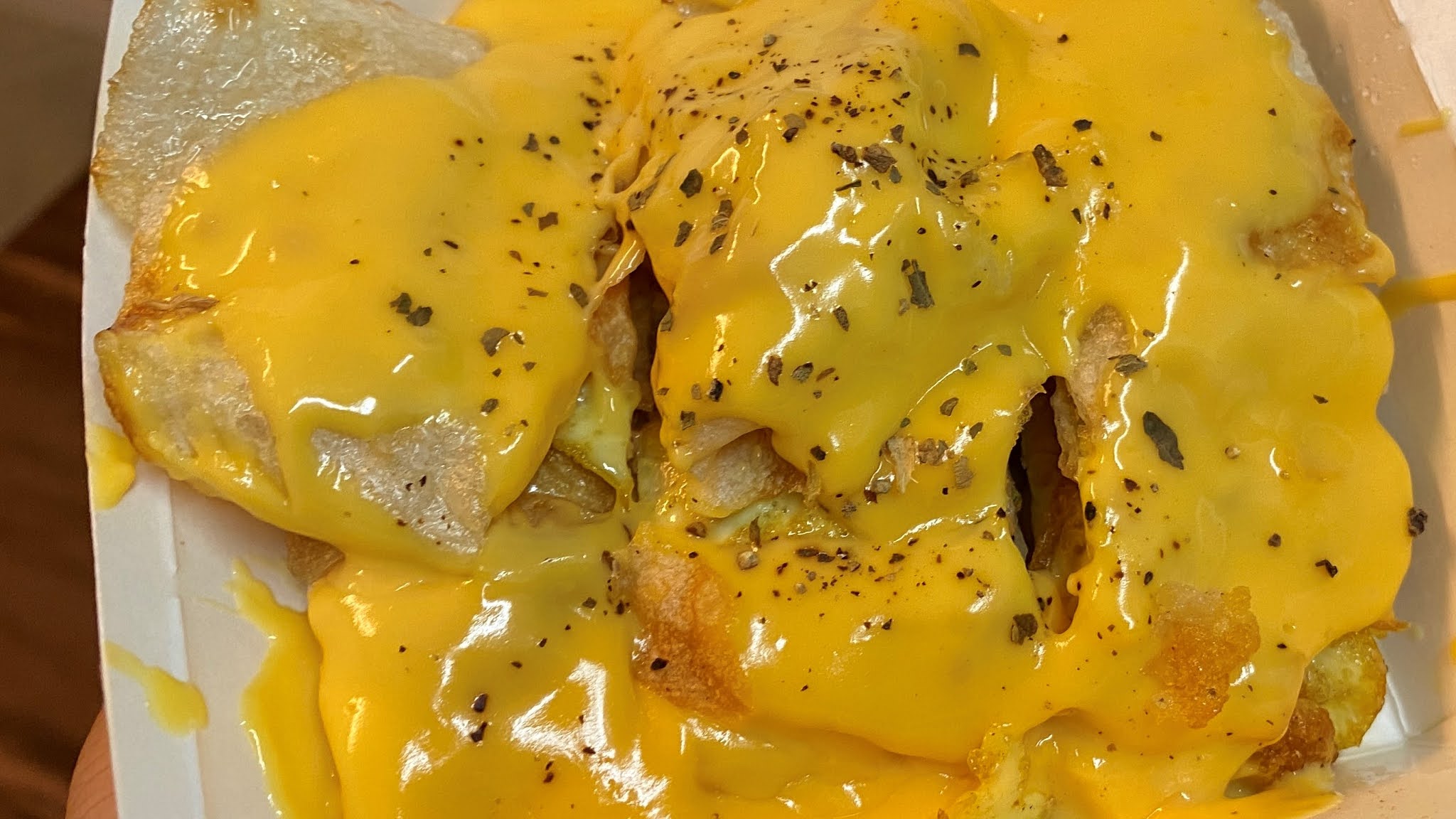 不過你會看到蛋餅旁邊也已經爆出了起司來,